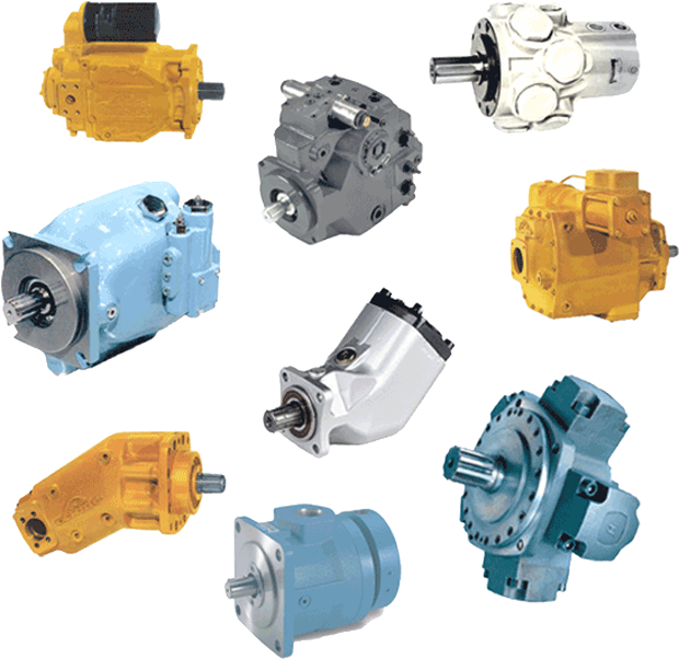 - Pompes et moteurs hydrauliques : engrenages, pistons, palettes